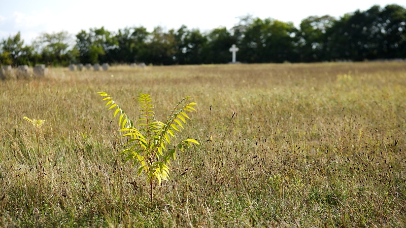 Wo heute das junge Essigbäumchen sprießt, lagen zum Serbenkreuz hin die Schachtgräber der Flecktyphusopfer.